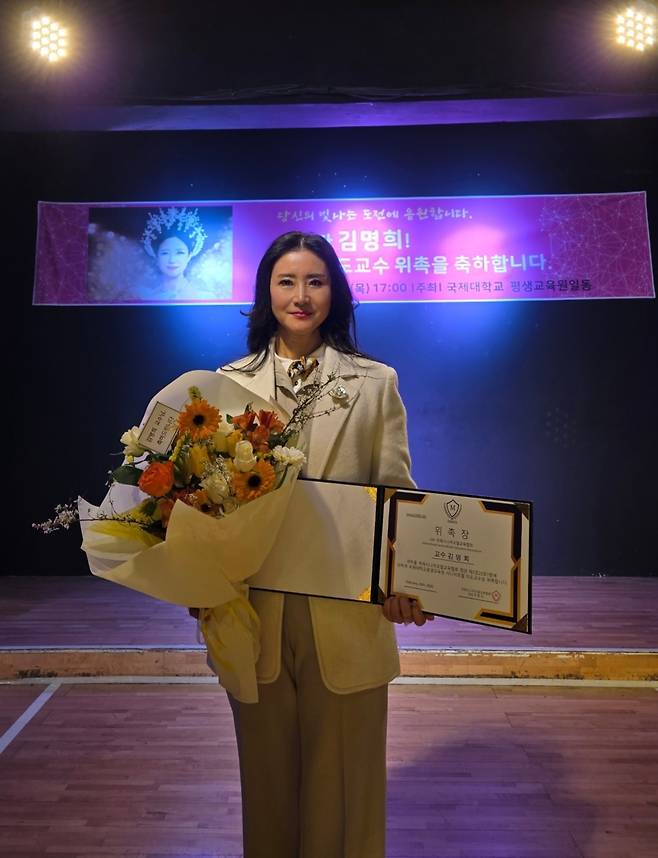김명희 지도교수는 국제대 재학 시절 문화예술콘텐츠학과 학생회장으로 활동하며 학과 운영과 행사 기획, 대외 협력 프로젝트를 주도해 왔다. 특히 문화예술과 콘텐츠 산업을 연결하는 기획 역량과 조직 운영 경험은 학과 내에서 높은 평가를 받아왔다고 학교 측은 설명했다.