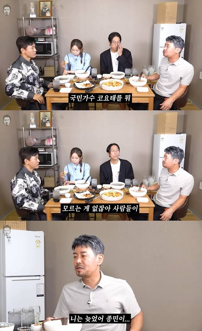 먹방을 펼치며 김대희는 "오늘 얘기 안 해도 된다. 국민가수 코요태를 사람들이 모르는 게 없지 않냐. 그냥 밥만 먹고 가도 된다"며 멤버들을 다독이기도 했다.