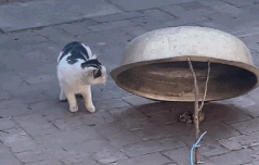 그러다 찰나의 순간, 대야가 쾅 하고 떨어지면서 고양이를 덮어버리고, 집 안에는 잠깐의 정적 뒤로 주인의 즐거운 웃음소리가 울려 퍼집니다. 대야 안에 갇힌 고양이가 계속 고기를 먹고 있을지, 아니면 자신이 한 선택을 후회하고 있을지 궁금해지는 순간이죠.