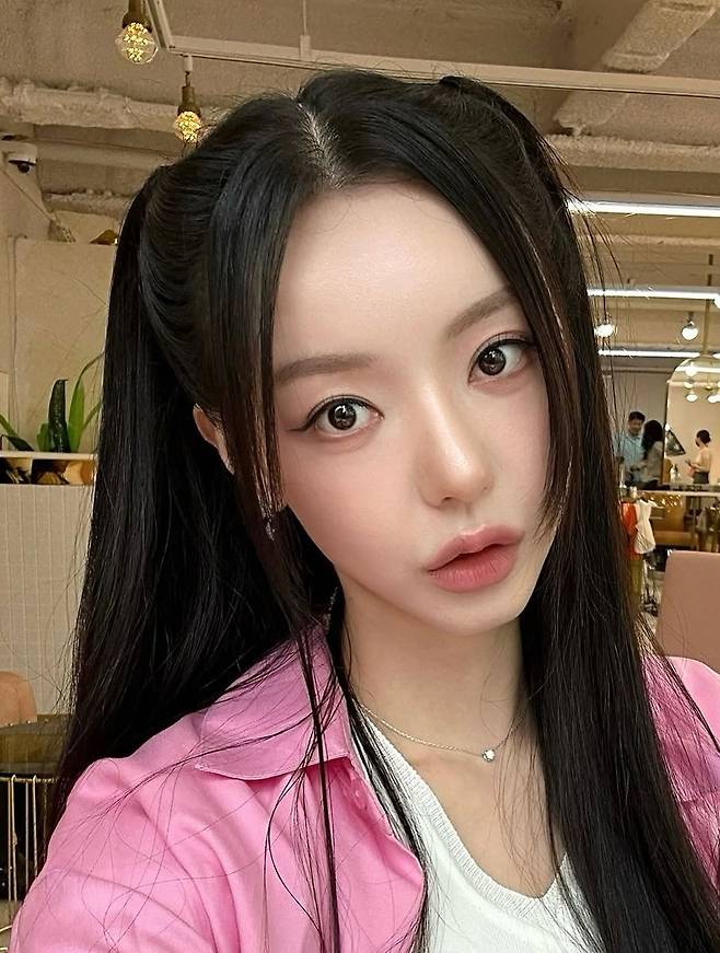 헤어는 정가르마를 기준으로 양갈래 반묶음으로 연출돼 K팝 애니풍 스타일에 딱 어울리는 러블리한 실루엣을 완성했다. 특히 얼굴 옆으로 떨어지는 스트레이트 앞머리는 얼굴형을 보완하면서도 캐릭터적인 분위기를 배가시킨다.