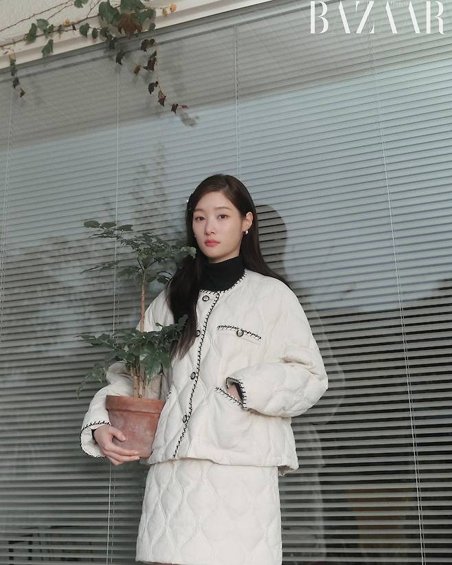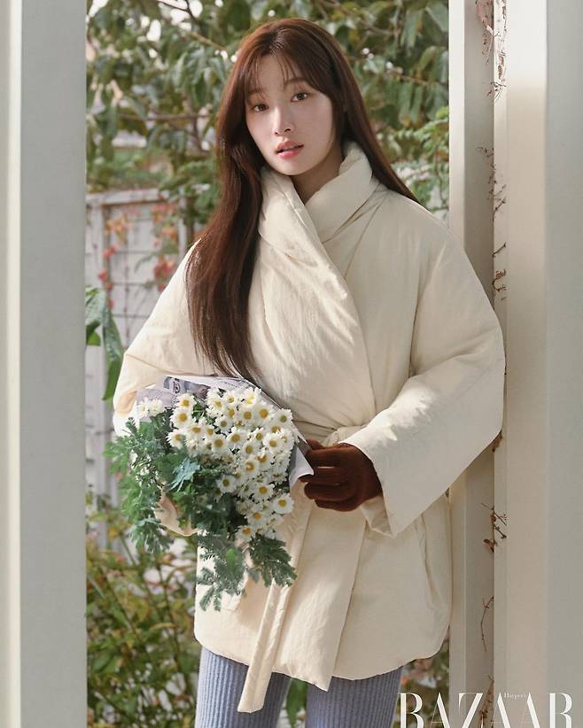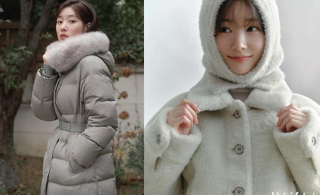 정채연은 무스탕 점퍼부터 더블 코트, 구스다운 점퍼 등을 사랑스럽게 소화했다. 특히 긴 기장의 트렌치 구스다운 점퍼를 착용한 컷에서는 시크하면서 무심한 시선으로 깊어진 내면을 엿볼 수 있었다.