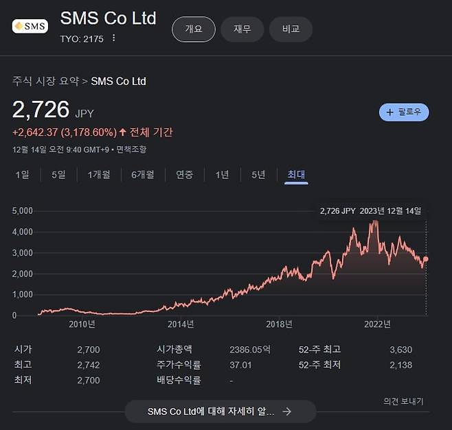 이진열 대표: 저희가 일본의 SMS 그룹이라는 B2B SW 회사를 벤치마킹하고 있어요. 한국과 일본이 요양보호 시스템이 거의 동일해요. 근데 지금 이 시장에서 일본 시가총액 1위가 SMS입니다. 저희와 모델이 거의 동일해요. ERP 사스, 보호사 구인구직, 고객 상담 연결, 이걸로 시가총액 2.5조를 찍고 있어요. 영업이익률이 15%씩 납니다. 반면 니치이학관, 츠쿠이홀딩스라는 오프라인 회사는 매출은 훨씬 큰데 PSR 배수가 1밖에 안 돼요. 영업이익률은 3% 수준에 불과하고요.
