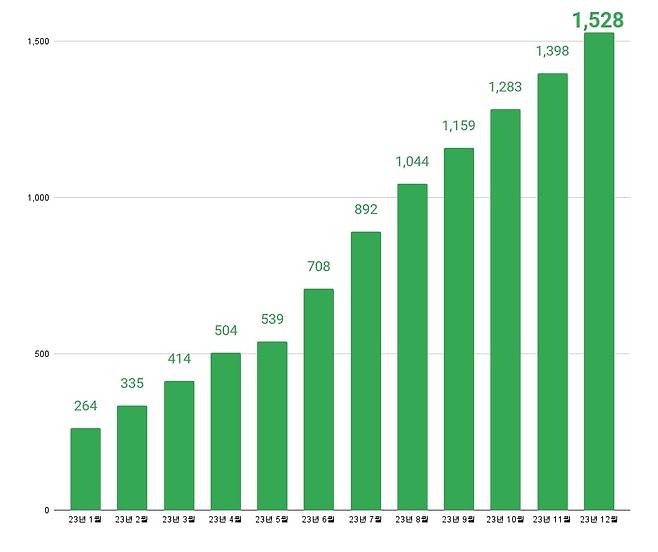 이진열 대표: 네. 답을 알고서도 오프라인 정리를 미뤘던 게… 저도 그렇지만 같이 힘쓴 분들께 너무 미안해서 미적거린 시간이 길었죠. 그런데 막상 집중하니 회사에 활력이 생겨요. 당장 저희 서비스를 사용하는 곳이 1년 전 50곳에서 1년 만에 1500곳으로 늘었어요. 그러면서 비용은 작년 이맘때 대비 1/5 정도로 줄였어요. 일단 줄이니까 집중이 되고, 그러니까 지표가 올라가는 선순환을 그린 거죠.