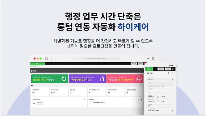이진열 대표: 네. 근데 ERP의 장점이 한번 들어가면 계속해서 확장이 가능하잖아요? 더존도 세무회계 용으로 시작해서, 지금은 온갖 걸 다 해줘요. 마찬가지로 하이케어도 ‘센터에 필요한 모든 기능’으로 확장하고 있어요. 센터가 가장 힘든 게 두 가지예요. 1) 어르신 상담 연결 2) 요양보호사 구인.
