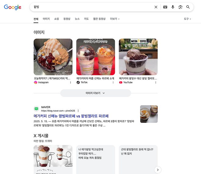 구글에는 ‘팥빙’이라는 키워드만 검색해도
