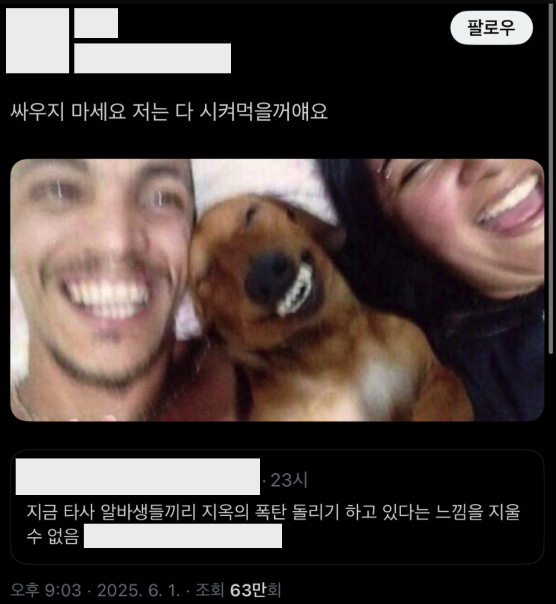 급기야 ‘타사 알바생들끼리 지옥의 폭탄 돌리기’ 중이라는