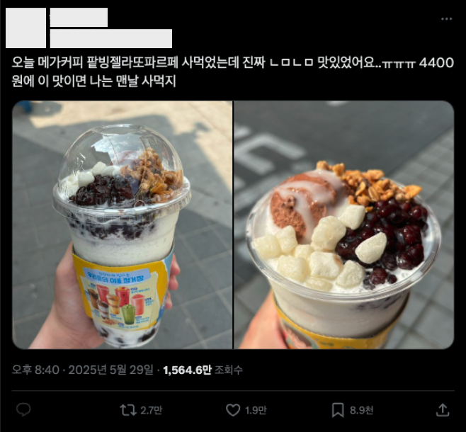 메가커피의 팥빙 파르페에 제대로 영업을 당해서