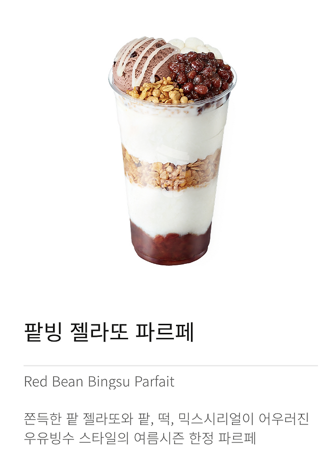 여름 시즌 한정 신메뉴 ‘팥빙 젤라또 파르페’.