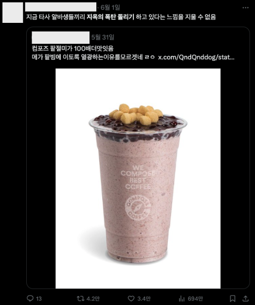 컴포즈커피의 ‘팥절미 밀크쉐이크’와 박빙인 것 같은데,