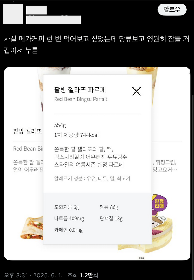 관련 기사에 따르면 ‘팥빙 젤라또 파르페’와 ‘망빙 파르페’는