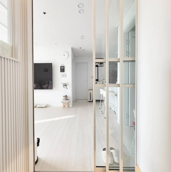 바로 현관을 기준으로 왼쪽에 위치한 방을 아이 공부방으로 선택하는 건데요.