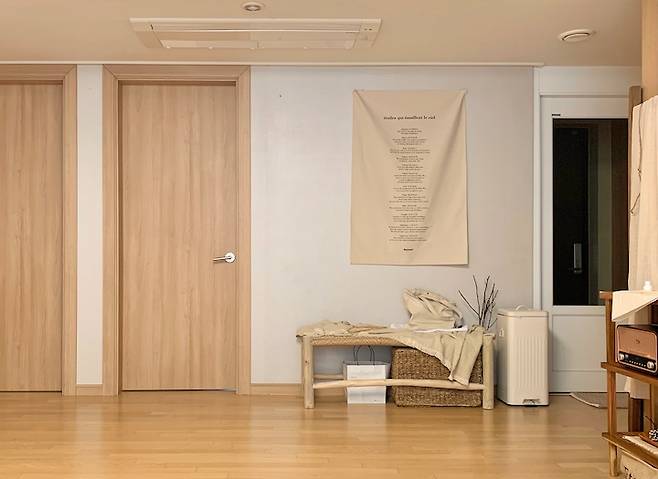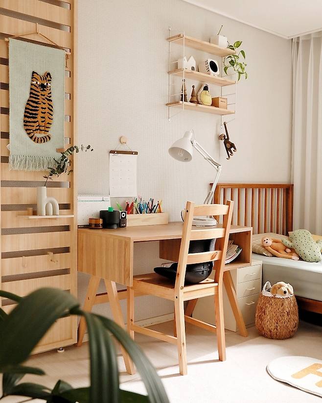 현관과 가장 가까운 방을 공부방으로 골랐지만, 현관 오른쪽에 있는 방이라 아쉽게 느껴진다면? 아래 소개할 가구 배치 방법 등을 통해 보완하면 되니 너무 아쉬워하지 마세요!