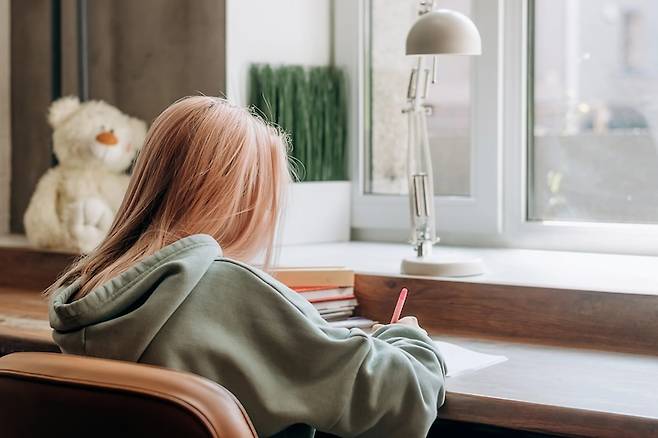 책상을 배치할 때 또 확인해야 할 것이 있는데요. 바로 아이가 책상에 앉았을 때 창문이 일직선으로 보이는지 체크해 주는 겁니다.