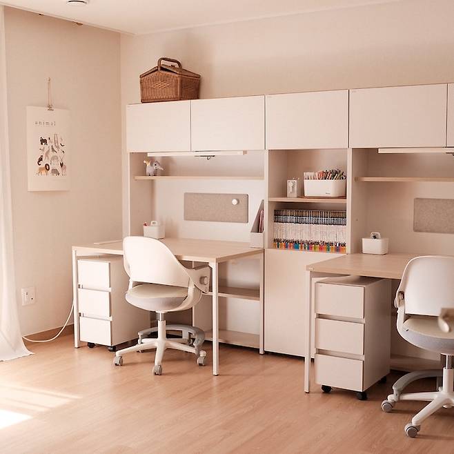 따라서 매일 쓰는 책과 교재 등은 잘 보이도록 깔끔하게 정리해주시고, 기타 장난감과 같은 물품은 불투명한 수납장에 보관해주는 게 좋습니다. 특히 아이가 저학년일수록 감추는 수납과 보이는 수납을 적절하게 활용해 주세요!