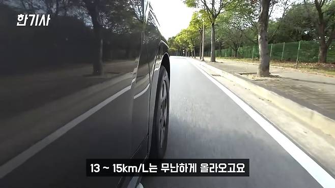 또 다른 장점은 연비를 꼽고 싶습니다. 시내에서 주행하게 되면은 13~15km/L는 무난하게 올라오고요. 고속으로 가게 되면은 연비 신경 안 쓰고 타면 15~16km/L 정도 나오고 연비에 조금 신경을 쓴다 하면은 20~22km/L까지 나옵니다.