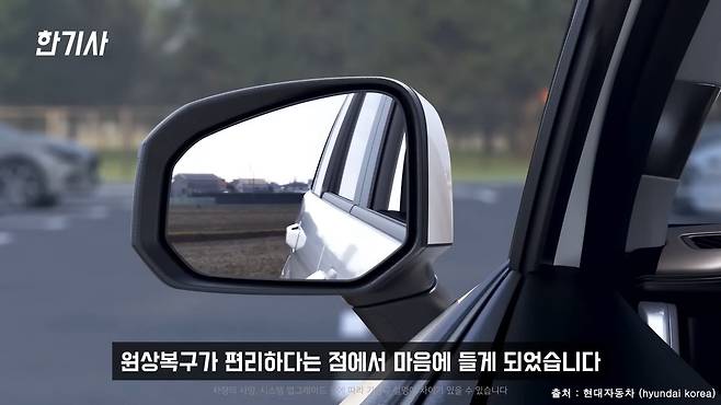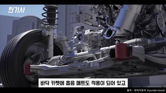 이 차량 승차감도 되게 만족하고 있습니다. 또 운전한 습관이 그렇게 달리는 편은 아니어서 되게 편하게 주행하고 있습니다. 차량 같은 경우는 정숙하고 안락한 승차감을 위해서 핫스탬핑 강판 비율을 증대시켜서 차체 강성을 조금 더 보강을 했고요. 양쪽 크로스멤버에 부싱을 장착해서 바닥 카펫에 흡음 매트도 적용이 되어 있고 하이브리드 모델 같은 경우는 e-ride 및 e-handling 기술이 적용이 되어 있기 때문에 민첩성과 주행 성능을 조금 더 개선됐다고 하더라고요.