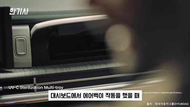 또 디 올 뉴 싼타페만의 비밀 시크릿 수납공간이 하나가 추가가 되어 있는데요. 조수석 상단에 수납공간이 비닐 공간 느낌처럼 열리는 게 있는데, 수납함이 위로 열리는 이유가 대시보드에서 에어백이 작동했을 때 에어백 동작에 간섭이 없이 잘 이루어지도록 하기 위한 구조적인 해결 방법으로 위쪽으로 열리는 거라는 현대차의 심오한 뜻이 포함되어 있더라고요.