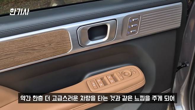 그리고 헤드업 디스플레이가 다양한 정보를 제공을 해 주고요. 천장에 스웨이드 재질과 도어 트림에 가죽으로 된 마감 처리가 한층 더 고급스러운 차량을 타는 것과 같은 느낌을 주게 되어 장점으로 꼽게 되었습니다. 제네시스 G80 뺨 때릴 정도로 싼타페 보다 한 급 높은 차량을 보여주는 것 같은 그런 고급감을 굉장히 추가해주고 있어요.