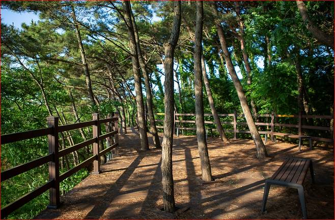 전망대 아래에는 소나무 숲이 빽빽하게 우거진 데크 산책길이 이어지며, 노을빛이 소나무 사이로 비치는 풍경은 한 폭의 그림처럼 다가옵니다. 속동해안공원에서는 텐트나 그늘막을 치고 하루를 마무리하며 감상하는 노을이 또 다른 여름의 낭만을 전해줍니다.