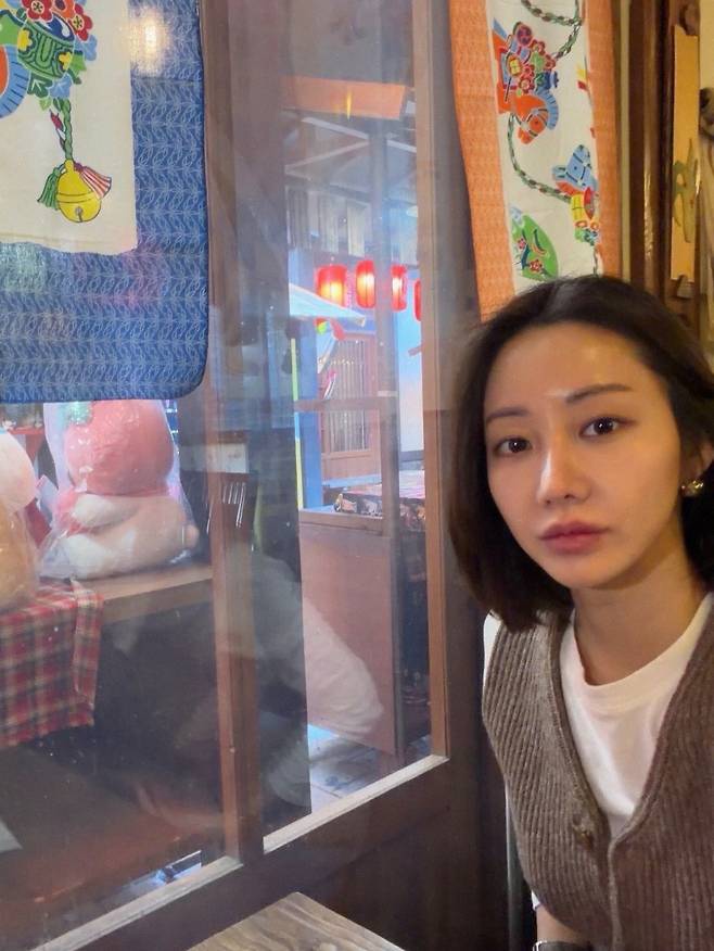 한그루는 일본의 이국적인 분위기가 느껴지는 식당에서 수수한 듯 세련된 패션 감각을 뽐내며 팬들의 시선을 사로잡고 있어요.