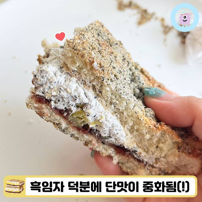 가장 최근에 먹었던 맘모스빵이 덮어놓고 달달하기만 한 맛이어서 실망한 참이었기에, 흑임자 크림을 품고 나온 혜자로운 맘모스빵이 더욱 반가웠던 것 같아요!