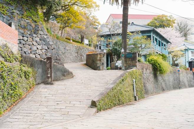 아름다운 경사로인 오란다자카는 나가사키의 풍경을 보기 좋은 곳인데요. 살짝 높은 곳에 있어서 걸어 올라갈수록 바뀌는 풍경들을 즐길 수 있으며, 짧은 시간을 투자하면 충분히 다 둘러볼 수 있으니 산책한다는 느낌으로 여유롭게 걸어보는 것도 좋습니다.