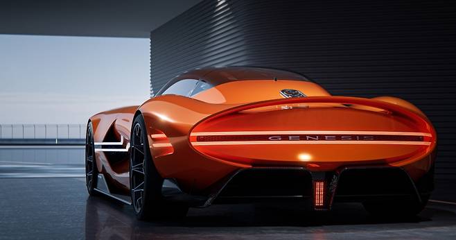 후면부는 제네시스 차량에서 공통적으로 확인할 수 있는 타원 형태의 디자인을 채택했다. 공기역학을 고려한 리어 스포일러를 적용해 안정감 있는 고속 주행 성능을 제공한다.