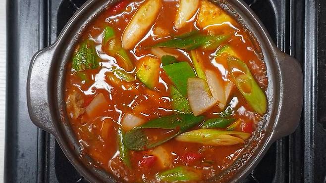 애호박찌개 완성이에요