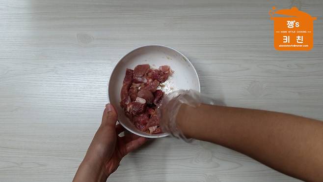 밑간 한 돼지고기를 넣고 볶아주세요