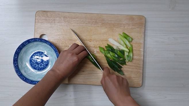 대파와 고추는 어슷 썰어 준비합니다