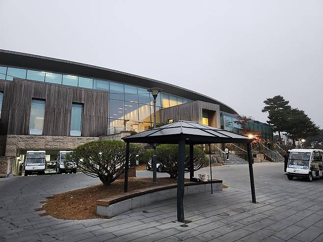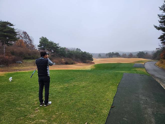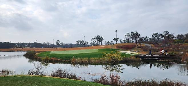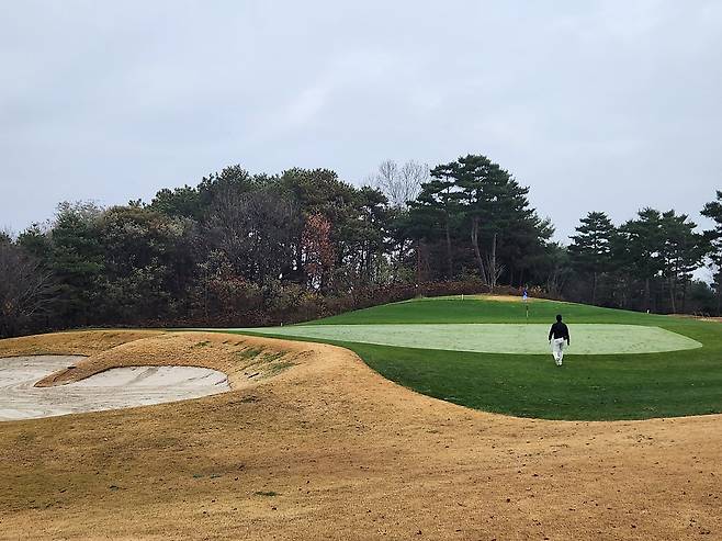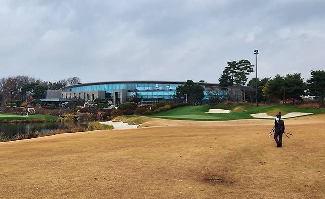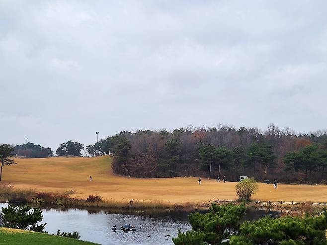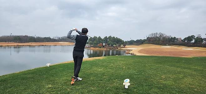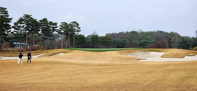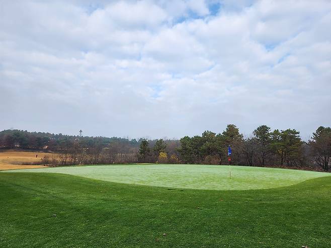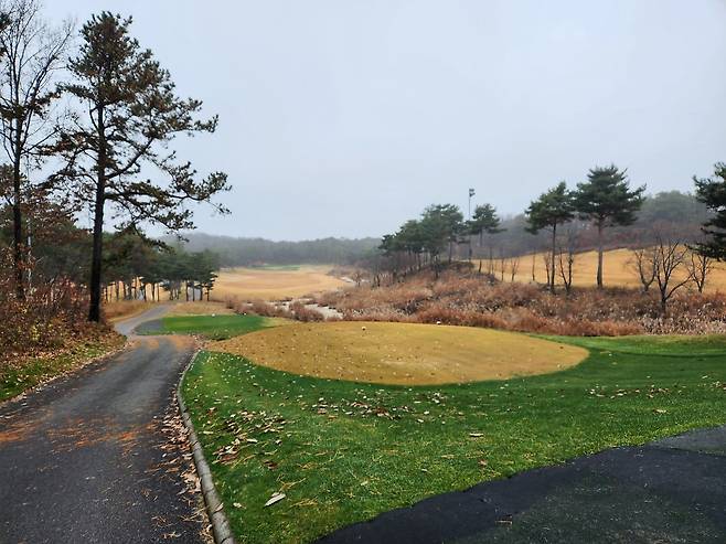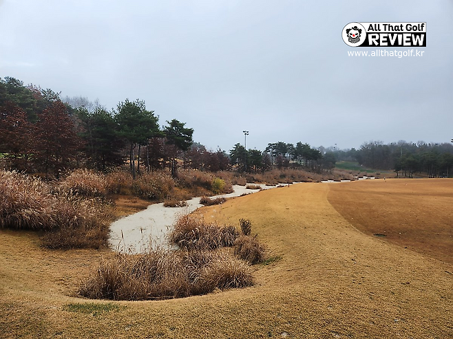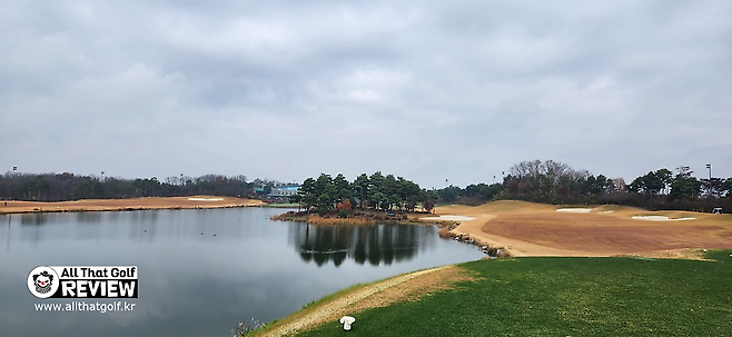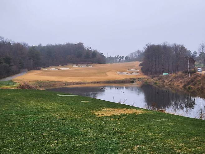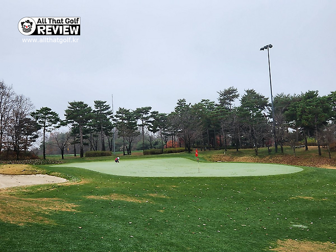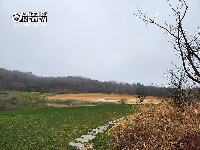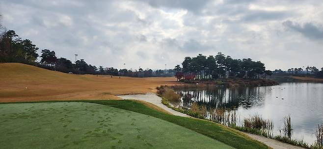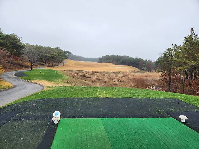 겨울 골프를 대비해서 매트 플레이가 절반 이상입니다. 티 박스 간격을 깔끔하게 구별되어 있으며, 홀 표기도 잘 되어있습니다. 대부분 홀에서 그린과 핀이 보이는 듯하며, 도그랙 홀은 거의 없는 것으로 기억합니다. 내리막 및 오르막 티 샷도 거의 없어서 부담스럽지는 않습니다.