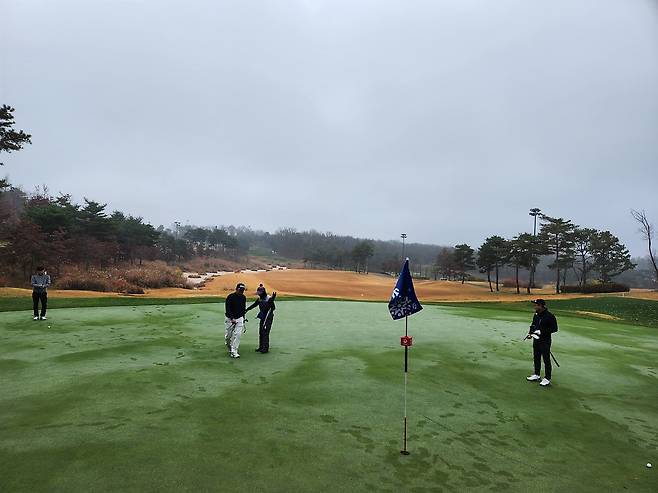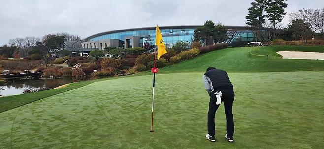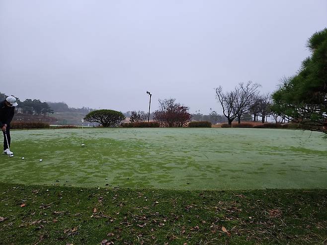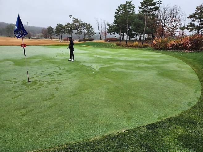 그린 상태는 11월 중순 치곤 상당히 좋은 상태였으나 모래가 너무 많았습니다. 젖은 표면에 모래가 공에 들러붙을 정도여서 거리 가늠하기 어려울 정도로 많았습니다.