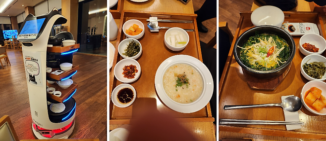 음식은 정갈하게 잘 나오고 맛도 좋았습니다. 가볍게 드실 분들을 위한 계란 2알만으로도 주문 가능했습니다 (3000원). 각 테이블에서 태블릿으로 주문하는 형식이며 음식은 서빙 로봇이 가져다주네요. 음... 뭐랄까.. 셀프서비스에 가격은 그대로?