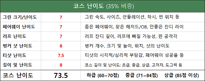 ▶ 페어웨이: 상태 8점 / 난이도 7점
