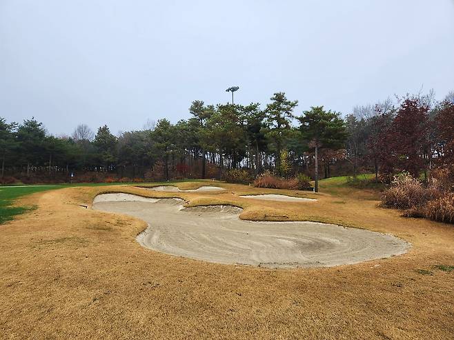그린 주변 벙커들과 페어웨이 벙커들은 대부분 큼직하고 어느 정도 깊이도 있습니다. 또한 모래도 곱지만 무거워서 견고한 스윙을 해야 탈출이 가능합니다.