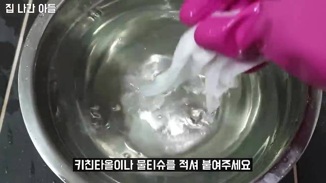 키친타월/물티슈 적셔서 곰팡이 부위에 30분 부착