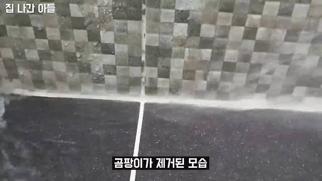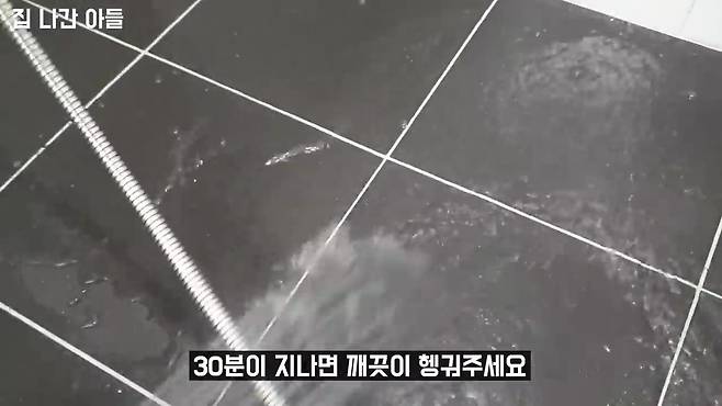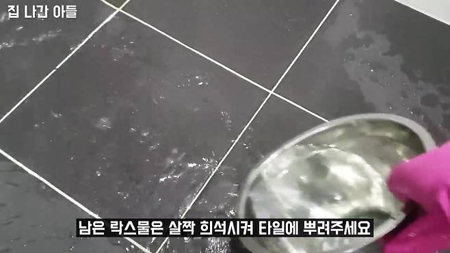 남은 락스 물은 물을 더 희석시켜 바닥 타일에 뿌리고 헹굼