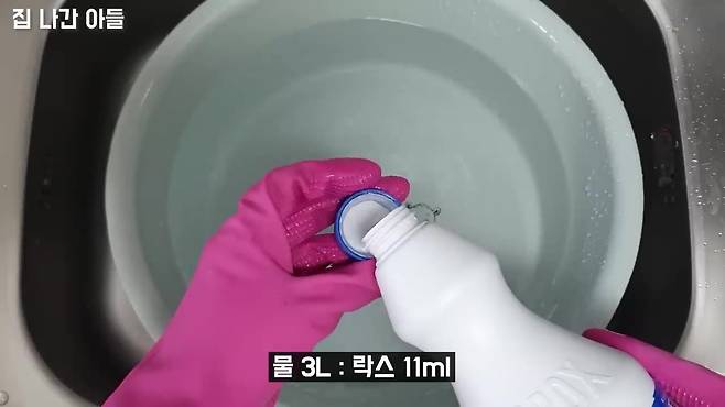변기 물탱크 살균 물 3L + 락스 11mL 희석