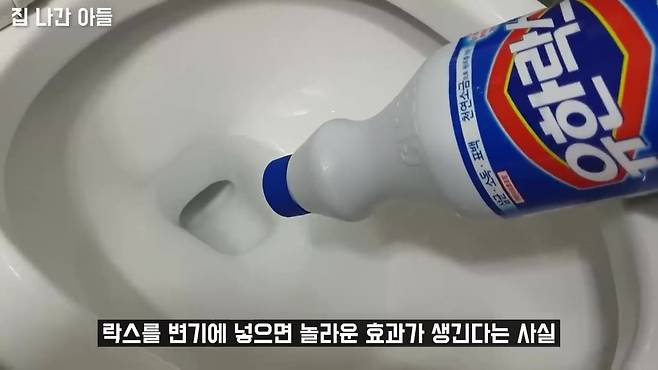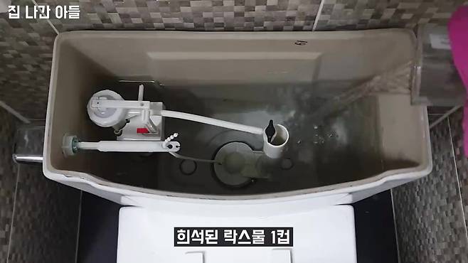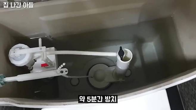 락스 물 1컵을 변기 물탱크에 붓고 5분 대기