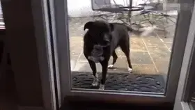 이 강아지는 유리문 앞에서 주인에게 간절히 문을 열어달라고 애원합니다. 눈빛으로 '제발 열어주세요'라고 호소하는 모습은 너무나 애처롭습니다.