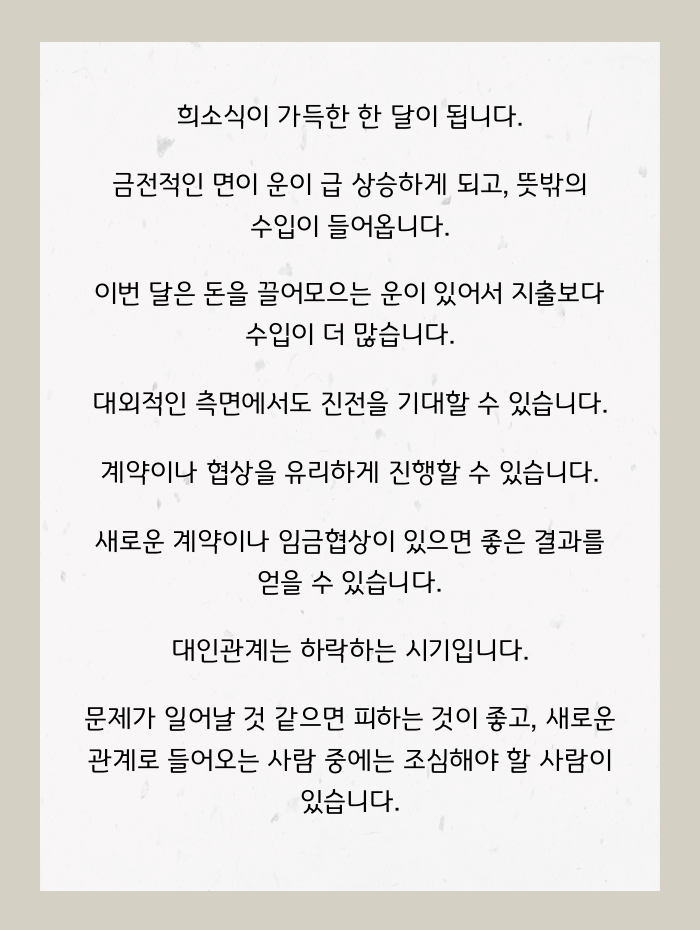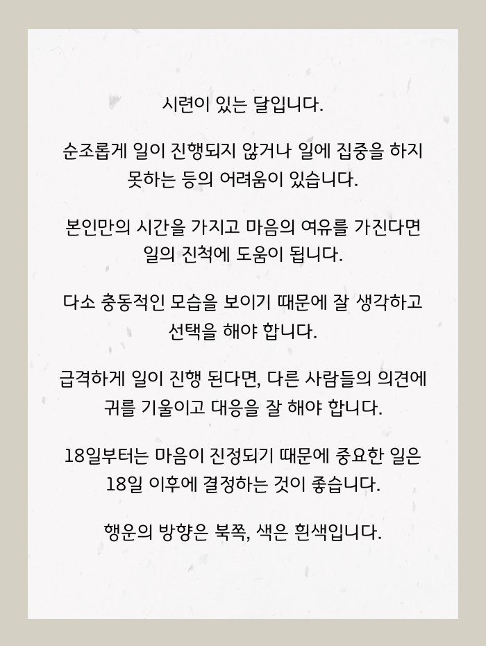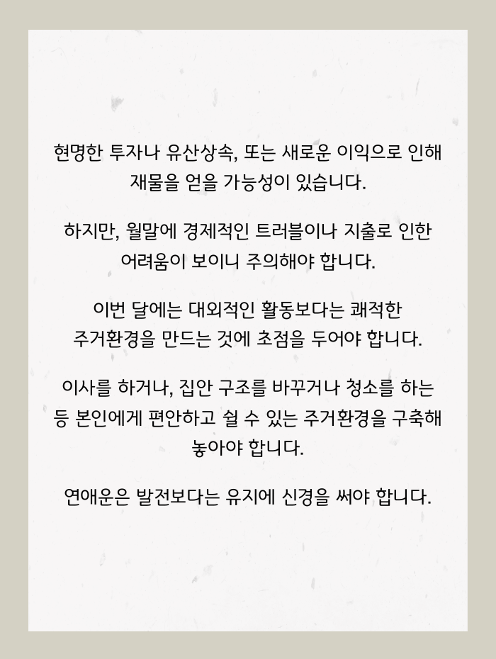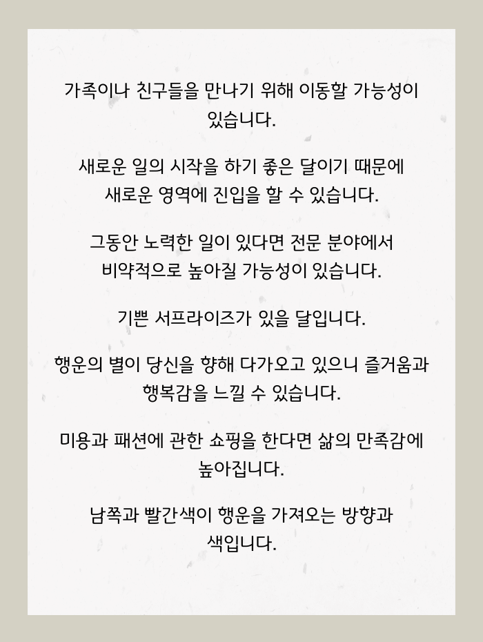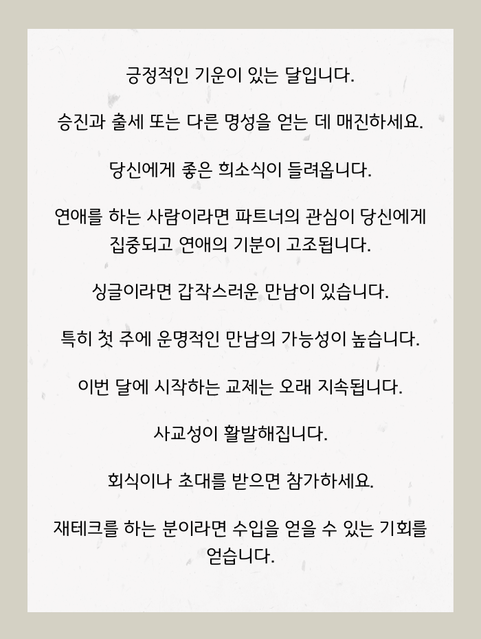 이번 달에는 각자의 띠에 깃든 운의 흐름을 살펴보며, 새로운 기회와 가능성을 발견해보세요.