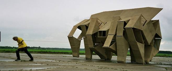 아이가 만들어낸 뼈다귀 괴물은 바람 없이는 꼼짝도 하지 않았다. 선풍기를 틀면 여러 개의 얇은 다리를 옆으로 옮겨가며 거실 테이블 위를 느릿느릿 지나다녔다. 뭔가 신기한 호기심이 발동하면서도 그 생김새 때문인지 지네처럼 느껴졌다. 징그럽고 섬뜩한 기분도 들었다. 이렇게 복잡한 구조를 만들고 바람에 의해 움직이게 한 사람, 테오 얀센이 궁금해졌다.