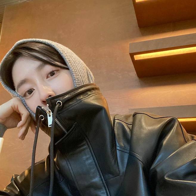 배우 박지현은 레더 재킷에