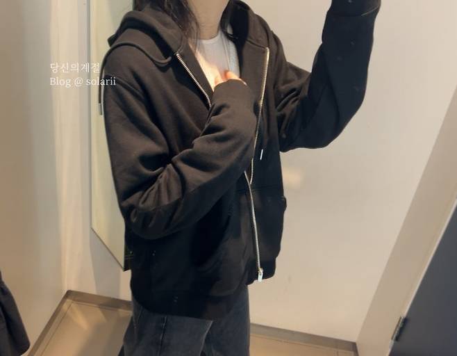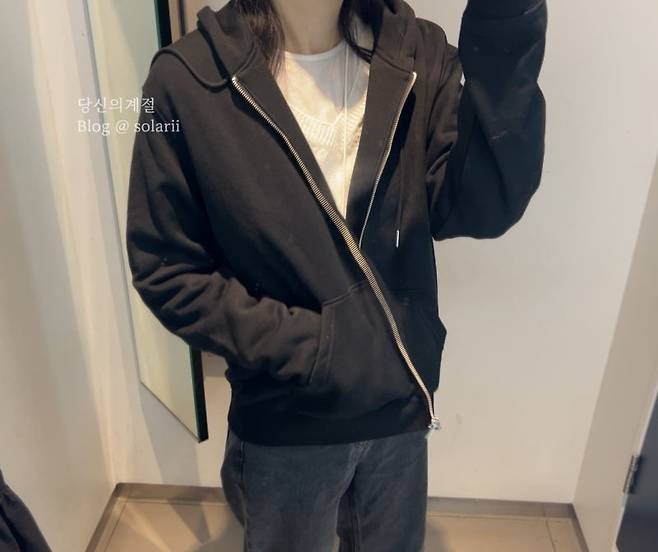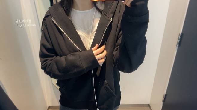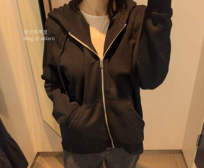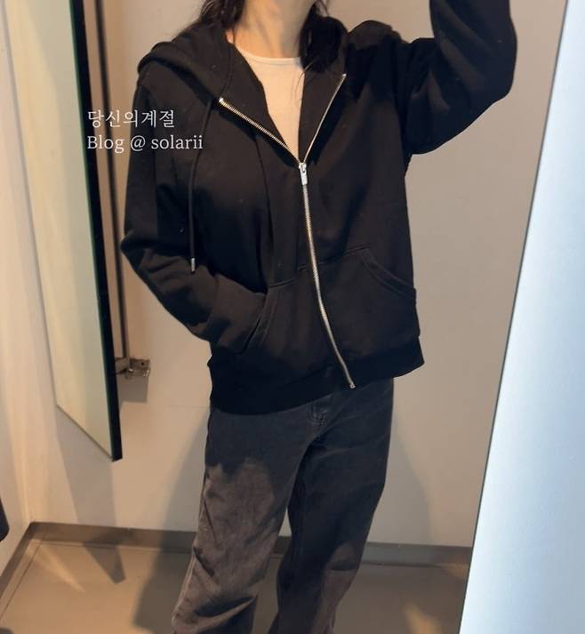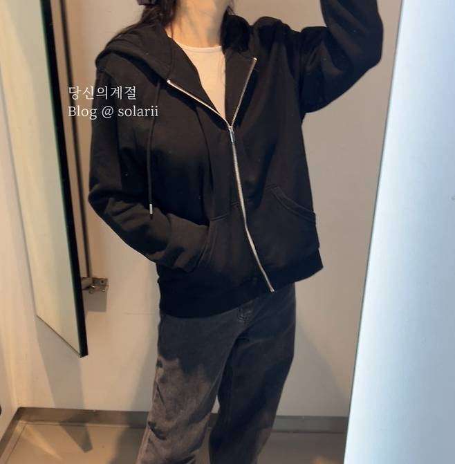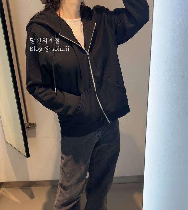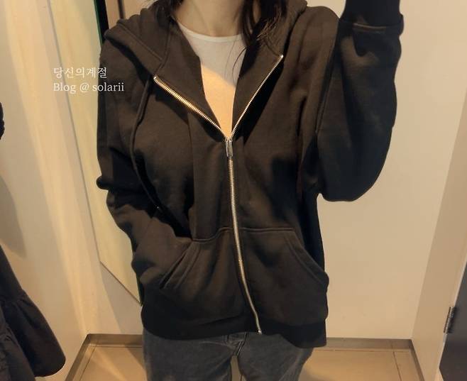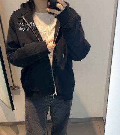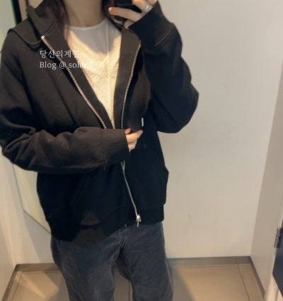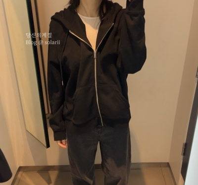 20대 때는 아메리칸 어패럴 후드 매년 샀었는데, 회사 다니면서 살짝 멀어졌었거든요. 근데 요즘 갑자기 후드가 너무 끌리는 거 있죠! 역시 집업만큼 쉽고 빠르게 코디할 수 있는 아이템은 없는 것 같아요.