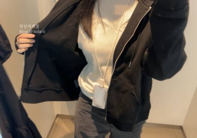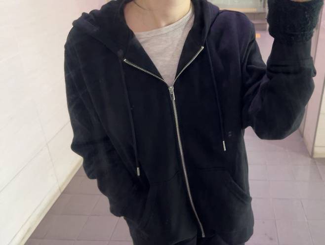 두 번째 꿀템은 바로 이 H&M 후디 집업! 솔직히 말하면… 어제도 입었어요. 🤣 기모 안감이라 따뜻하고, 활용도도 최고!