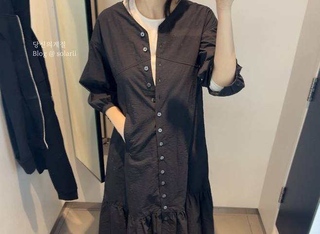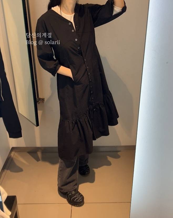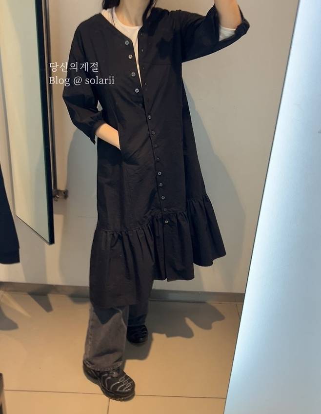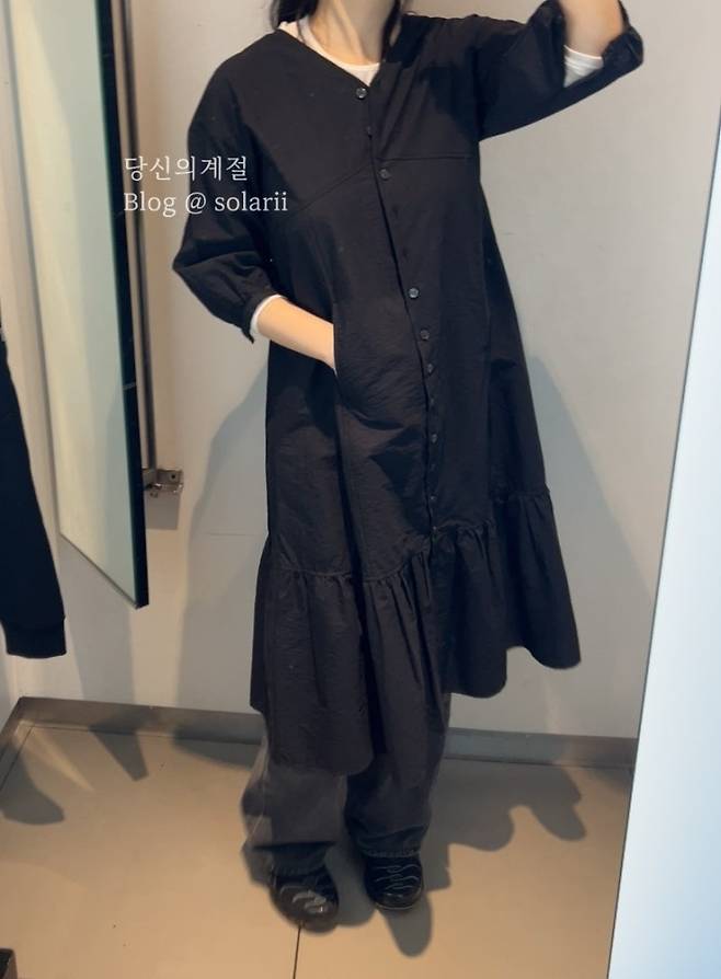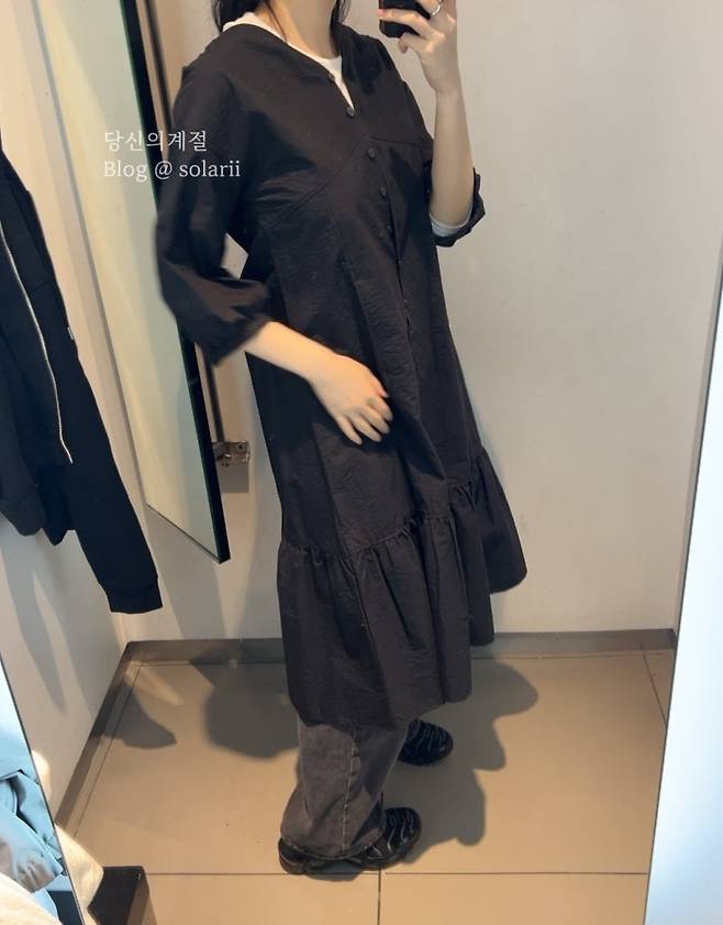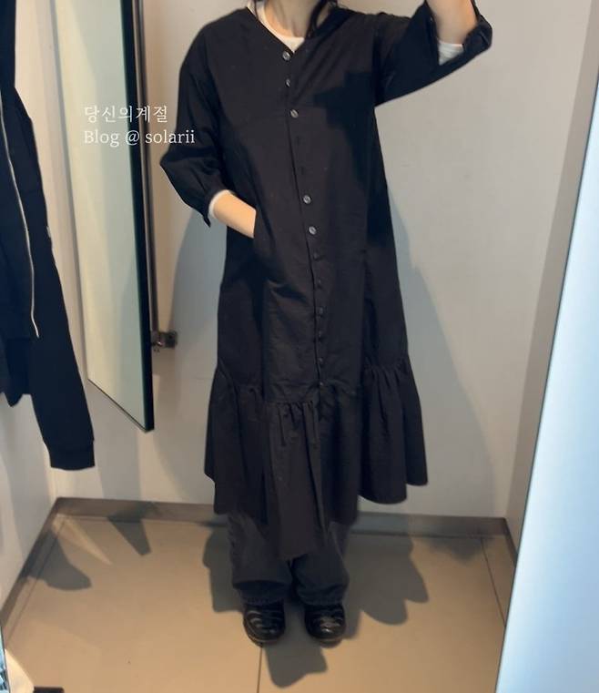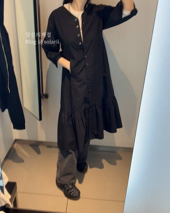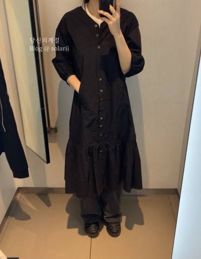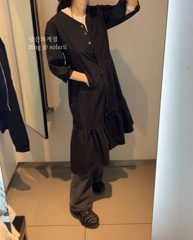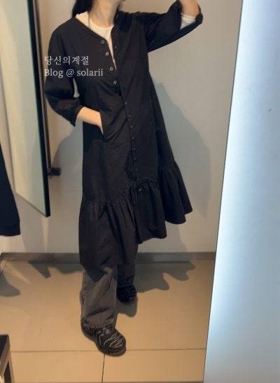 에디터의 눈에 띈 요 아이! 흔치 않은 스타일과 트렌디한 무드가 뿜뿜 느껴지는 H&M 버튼업 드레스예요. 모리걸 스타일 좋아한다면 무조건 소장각! 피팅까지 해보고 온 따끈따끈한 후기, 지금 시작할게요!