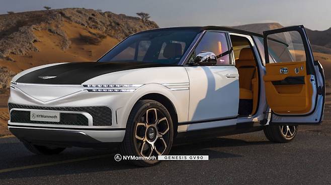 디자인은 GV70과 GV80보다 훨씬 고급스럽고 정제된 라인을 채택할 전망이다. 시그니처 두 줄 DRL이 더욱 얇아지고 넓게 퍼지며, 수평형 테일램프와 간결한 리어 디자인이 고급 SUV의 품격을 강조한다. 특히 센터 오픈형 ‘코치 도어’ 채용 가능성은 리무진급 고급스러움을 암시한다. 실내에는 파노라마 디스플레이, 리클라이닝 시트, 노이즈 캔슬링 등 최고 수준의 편의성이 예상된다.