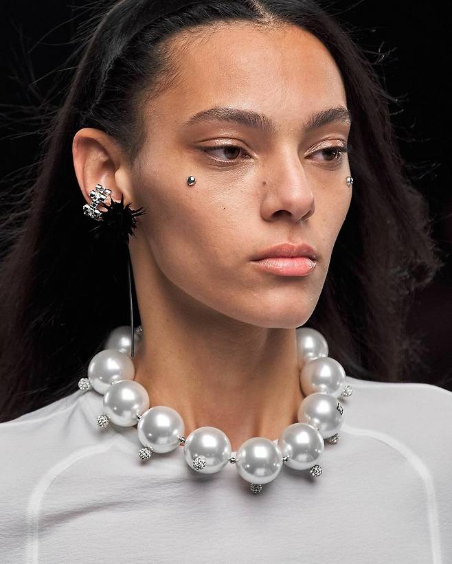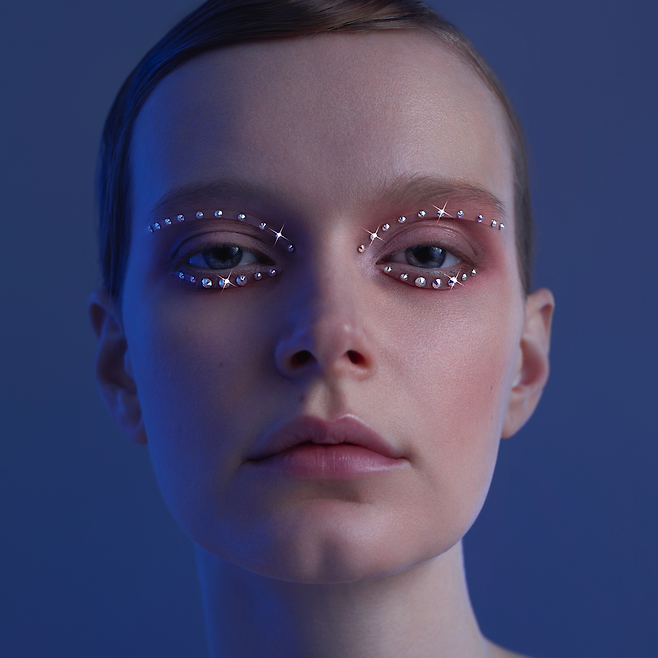 런웨이 위의 사정도 다르지 않다. 2022 FALL 컬렉션은 페이스 주얼 트렌드가 점령했다고 해도 과언이 아닐 정도다. 단연 돋보이는 것은 팻 맥그라스(Pat McGrath)의 터치로 완성된 버버리(Burberry) 쇼의 룩. 얼굴 전체에 월계관 모양으로 크리스털을 장식한 것은 물론 브랜드 로고까지 정교하게 연출했다. 시몬 로샤(Simone Rocha)는 아일랜드의 전통 장식을 참고해 마치 눈가에 크리스털 날개가 달린 듯한 우아한 룩을 선보였고, 코셰(Koché)는 눈가와 입술에 꽃이 내려앉은 듯 크리스털을 붙였다. 얼굴 위에 크리스털로 아트를 한 것 같은 룩도 있는 반면 손쉽게 도전할 수 있을만한 디자인도 눈에 띈다. 더 블론즈(The Blonds)처럼 눈 앞머리나 눈썹 근처에 한 두개를 붙여주거나, 지방시(Givenchy)처럼 크리스털 대신 메탈 장식을 사용하면 페이크 피어싱을 한 듯 시크하게 연출이 가능하다.