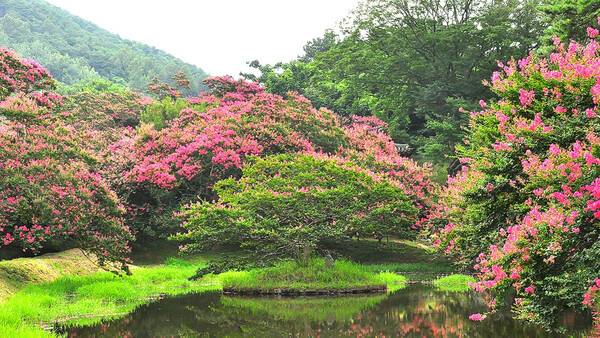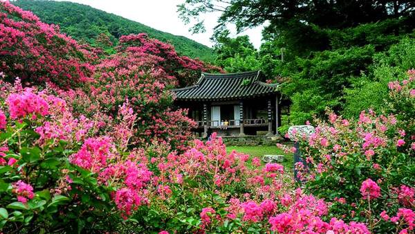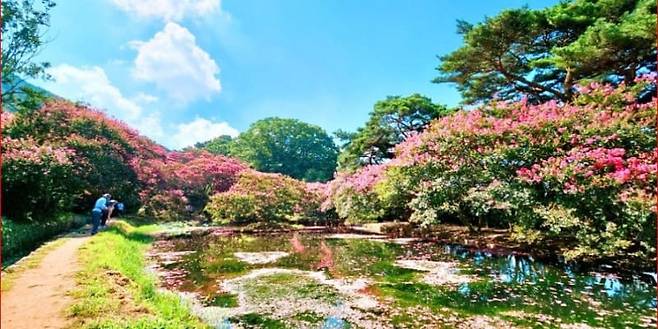 전라남도 담양에 위치한 '명옥헌 원림'은 여름마다 진분홍 배롱나무꽃이 정원을 가득 채우는 대표적인 전통정원입니다.