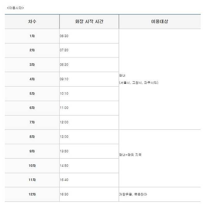 예컨대 서울시립승화원과 서울추모공원 모두 오전 6시 30분부터 정오까지는 서울시, 고양시, 파주시민 등 관내 주민만 예약을 허용하고 있다. 수원시연화장은 오전 7시 1회차는 수원시민만 예약이 가능하다.